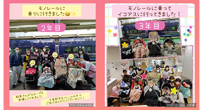 例えば、2年目はモノレールに乗りに行くという外出をしました。